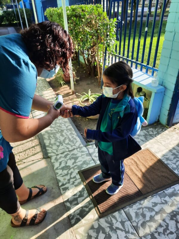 • Todas las personas que ingresen a la escuela deben tomarse la temperatura, higienizar sus manos y calzado.