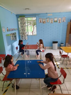 • Las mesas de los nuestros niños tienen un acrílico separador
